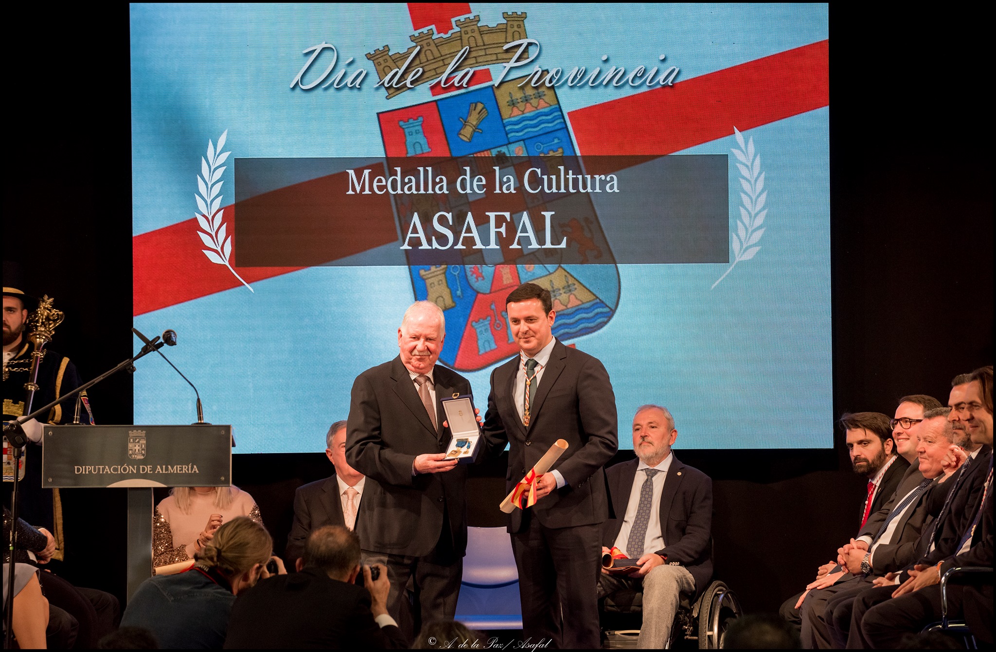 El pasado domingo 24 de noviembre de 2019 el presidente de ASAFAL, D. Jesús Martínez Capel, recibió la Medalla de la cultura 2019 de la Excma. Diputación provincial de Almería de manos de su presidente, D. Javier Aureliano García.