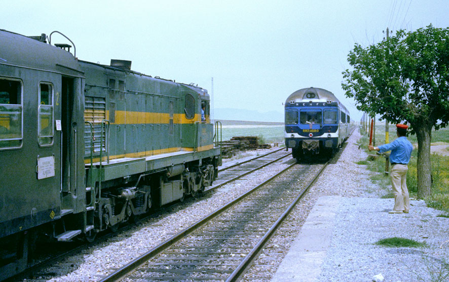 Un tren TER Valencia-Granada en la estación de Tíjola, que circuló desde mediados de la década de los años 70 hasta principios de los 80.