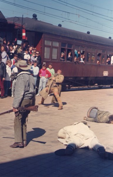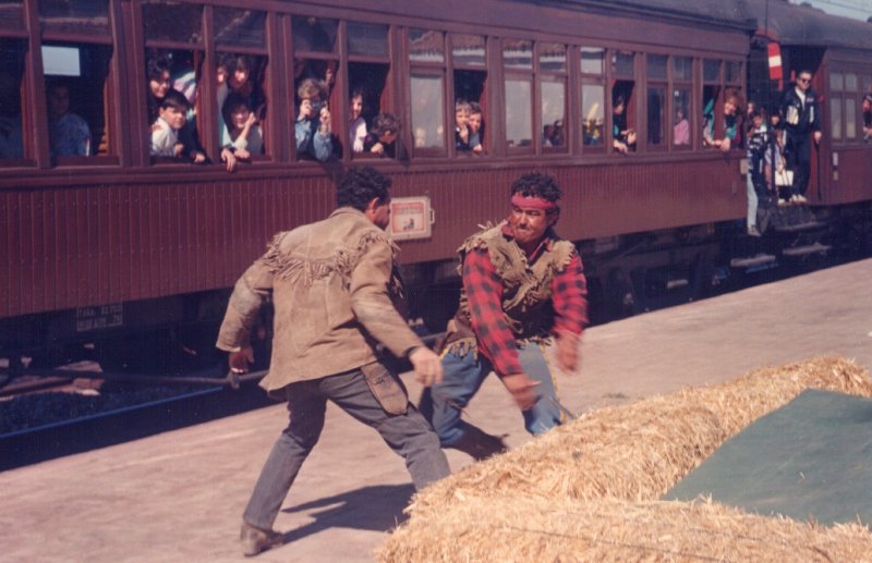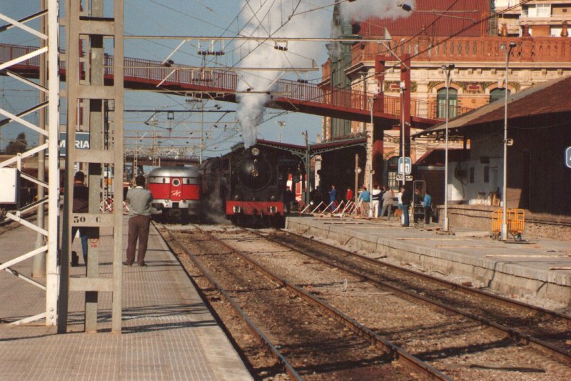 Hubo una época, allá por los años 80, en la que la Red Nacional de los Ferrocarriles Españoles apostó por los trenes turísticos como un producto comercial atractivo que conjugaba la visita a ciudades y lugares de interés con el viaje en un tren singular. De todos ellos, además del ya conocido “Tren de la Fresa”, que sigue circulando cada temporada entre Madrid y Aranjuéz, había otros como el “Tren murallas de Ávila”, que partía desde la capital de España hacia la ciudad de Santa Teresa en el famoso “Platanito”, un revolucionario tren basculante de origen italiano, cuyo color amarillo hizo que se conociera por ese mote; y así, otros más como “Tren Doncel de Sigüenza”, “Tren Papa Luna”, “Tren de la Cava”, etc. Almería no quiso ser menos y, durante los meses de marzo y abril de 1990, se incorporó a esta oferta con un tren muy peculiar: El “SURESTE EXPRÉS” que, cómo no, tenía que estar asociado al glorioso pasado cinematográfico, cuando se rodaron tantísimas películas del Oeste en las que el tren siempre estaba presente. El recorrido: Almería – Guadix y regreso se hacia con una locomotora de vapor, un furgón-calderín y cuatro coches “Costa”,o sea, la composición que por entonces realizaba el “Tren de la Fresa”. La locomotora era la “Mikado” 141F2111, de vapor-fuel, entregada a RENFE en 1952 por North British, de Glasgow (Escocia) que, aunque originalmente era de carbón, en 1963 fue transformada para consumir fuel. Apartada del servicio en 1975 al finalizar la época del vapor en España, pasó a formar parte de la colección del recién creado Museo Nacional Ferroviario en 1984 para realizar trenes históricos. El furgón – calderín, de la serie VT 300.000 cumplía una doble función separar la máquina de los coches de viajeros (según el Reglamento de circulación de RENFE un coche de madera con servicio no puede circular con viajeros inmediatamente después de la locomotora) y suministrar al tren vapor para la calefacción si fuese necesario (aunque la máquina de vapor también puede realizar esta función). Para ello cuenta con una caldera alimentada con gasóleo. En cuanto a los coches “Costa”, construidos para los servicios de cercanías de la Compañía MZA (Madrid – Zaragoza y Alicante) entre 1914 y 1930. Se tratan de coches de madera (MZA nunca empleó coches metálicos por considerarlosdemasiado calurosos para sus líneas del sur), montados sobre bogies y dotados de plataformas abiertas con “balconcillo” en los extremos y posibilidad de intercirculación entre coches. El total de plazas era de 320. En el caso del tren almeriense, dado el duro perfil de la línea, en Gádor se acoplaba en cabeza una locomotora eléctrica de la serie 269 que ayudaba a subir las rampas hasta Huéneja-Dólar, fin del trayecto electrificado, continuando con vapor puro hasta entrar majestuosamente en la estación de Guadix. Previamente, en Gérgal, se hacía una parada para asistir a un emocionante espectáculo del Oeste protagonizado por los especialistas cinematográficos del poblado “Mini Hollywood”, situado en Tabernas, que hacía las delicias de los turistas que llenaban el tren. Esta parada era aprovechada para llenar el tanque del ténder de agua mediante la aguada restaurada de la propia estación. Mientras se hacía una visita por la ciudad accitana y la comida de los viajeros, la “Mikado” subía hasta el triángulo de Moreda para orientar la locomotora en sentido Almería y tener el tren preparado para su regreso, realizándose las operaciones técnicas oportunas. Viajar en una de las plataformas con balconcillo durante el trayecto de vuelta era todo un placer, sobre todo en la fuerte bajada entre Gérgal y Santa Fe. El pasaje, gracias al bar de uno de los coches y después de un día de emociones, iba más que animado, disfrutando de un tren único y de un paisaje único. Lástima que no tuviera continuidad, pero eso es otra historia.